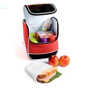 Hielera lonchera térmica fabricada en poliéster, un material resistente y fácil de limpiar.